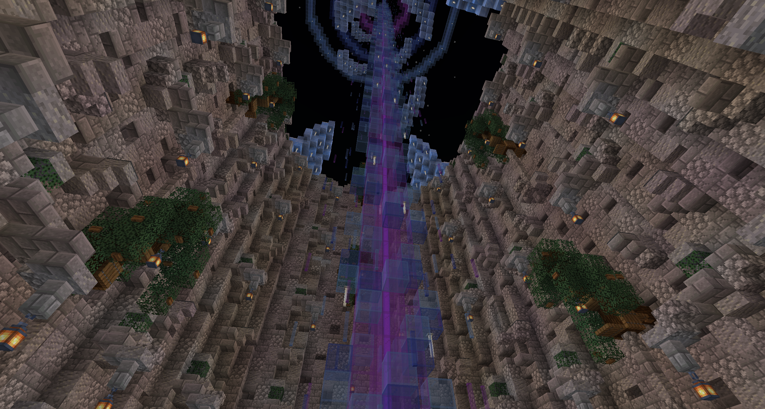 Upwards shot from the bottom of Frozen Spawn Parkour.